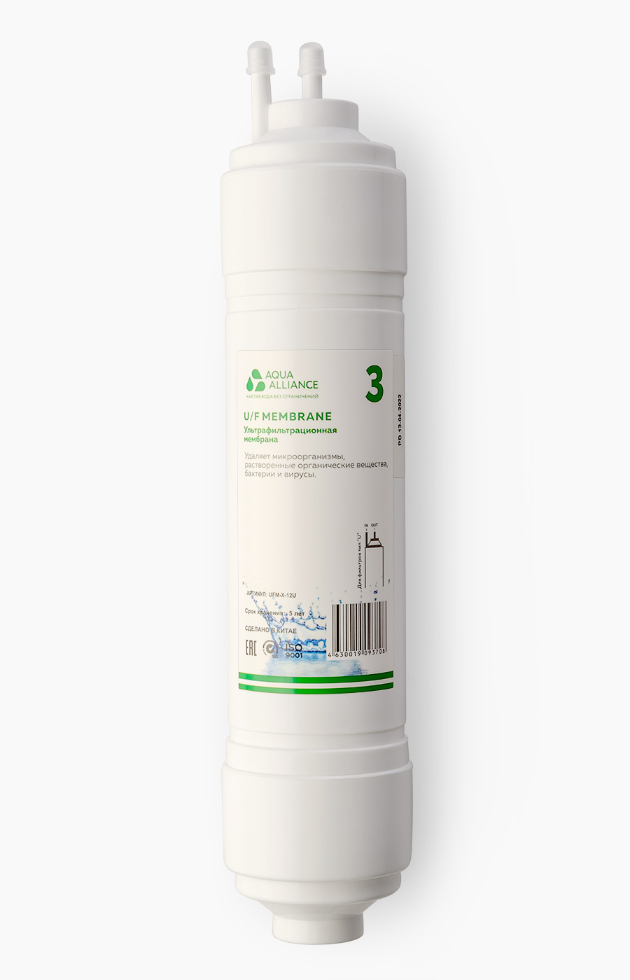Ультрафильтрационная мембрана. Удаляет микроорганизмы, растворенные органические вещества, бактерии и вирусы. Диаметр входного отверстия меньше чем корейские, рекомендуем при замене с корейских на китайские менять и всю систему соединения john guest.