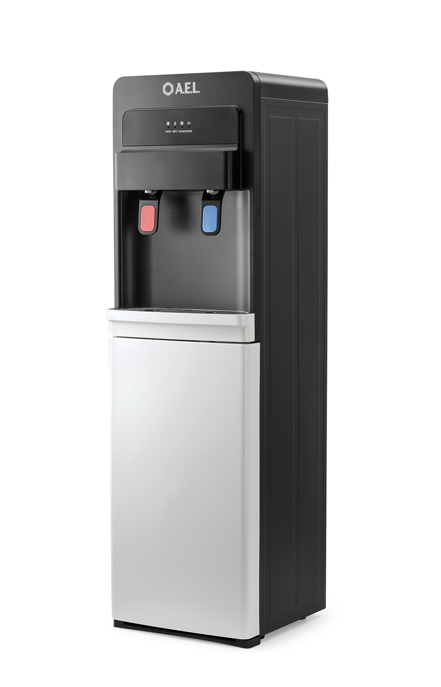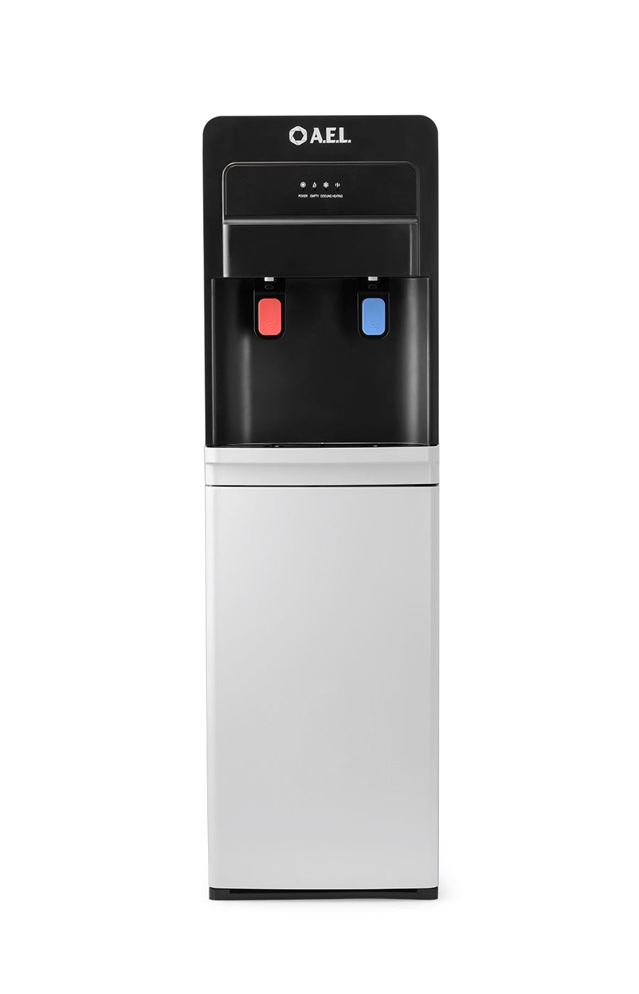 Новинка в ассортименте АЕЛ - кулер с нижней загрузкой бутыли с электронным охлаждением. Цвет: черный с белой вставкой. Модель оснащена двумя краниками нажим кружкой (горячая/холодная). Стильный лаконичный дизайн отлично будет смотреться в офисе и дома. В процессе эксплуатации аппарата в тот момент, когда вода в бутыли закончилась, на панели индикации загорится индикатор наличия воды в бутыли. Это символизирует о том, что необходимо заменить пустую бутыль.