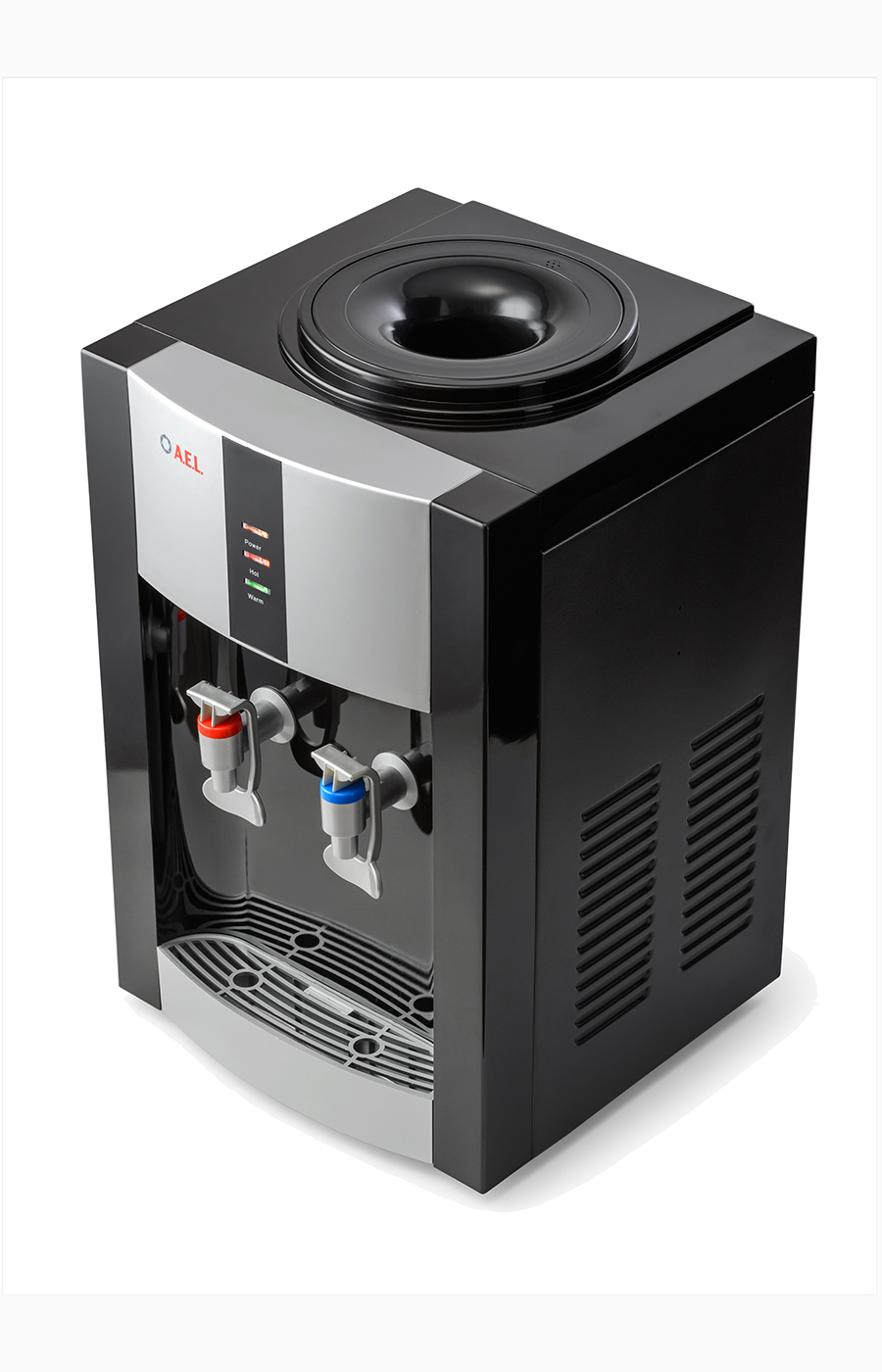 Настольный аппарат с электронным охлаждением. Цвет: черный с серебряной вставкой. Краники "нажим чашкой".
