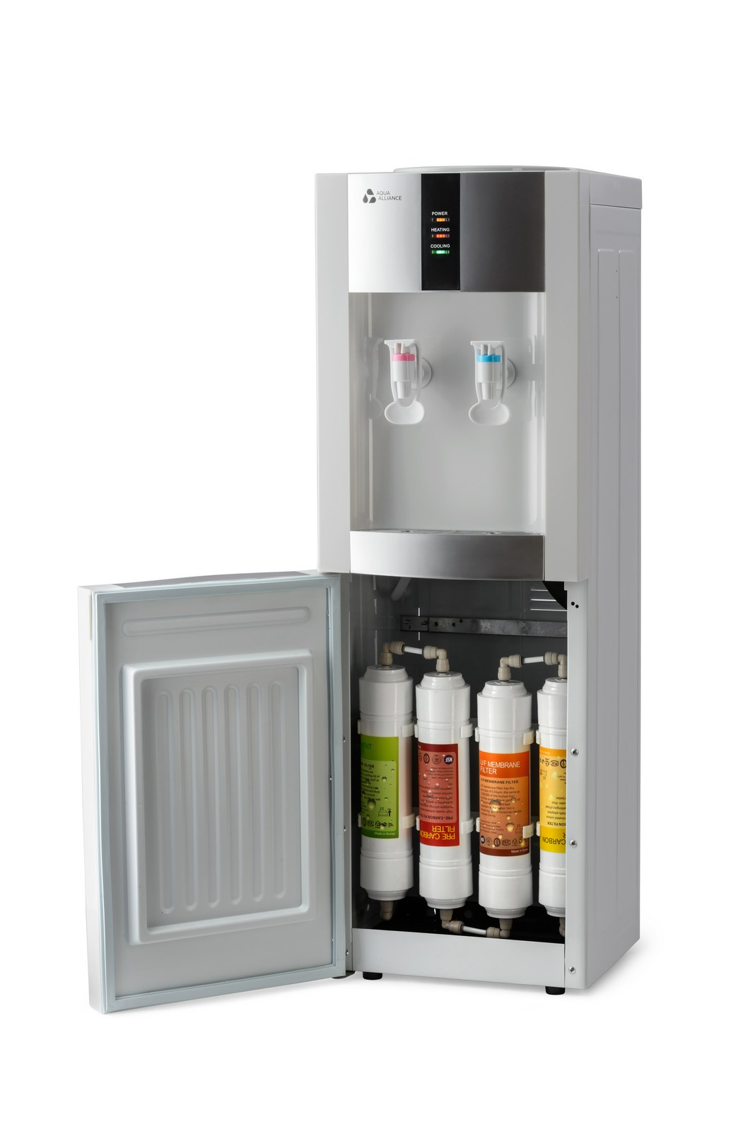 Представляем новинку в ассортименте AQUA ALLIANCE - напольный пурифайер электронного типа с 4х UF-системой очистки. Модель укомплектована внешним нагревательным элементом, баком нагрева 1,2л, и удобными краниками белого цвета нажим чашкой с внутренней резьбой. Цвет: белый корпус с серебряными вставками, боковые панели белого цвета. Комплектация: кран врезки, трубка 1/4 - 3 метра, фильтры тип - I тип, фильтры размер - 12", инструкция.
