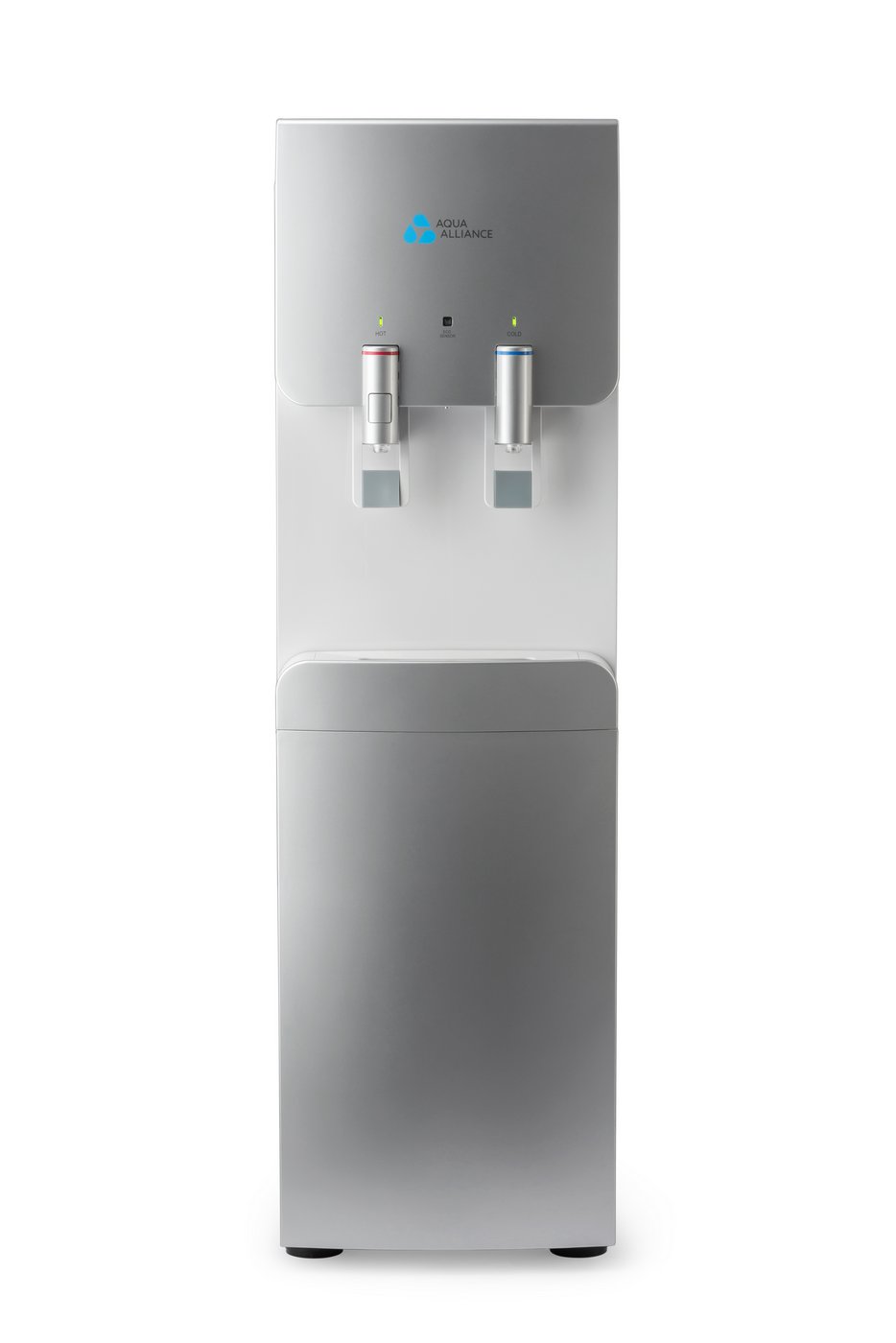 Стильный и необычный дизайн аппарата, подача воды управляется краниками. Имеется система непорционного получения воды. Панель индикации работы систем охлаждения, нагревания. Наличие режима экономии энергии Наличие функции «защита от ожогов» (на кранике горячей воды имеется кнопка, блокирующая подачу горячей воды). Цвет серебро с белой вставкой.