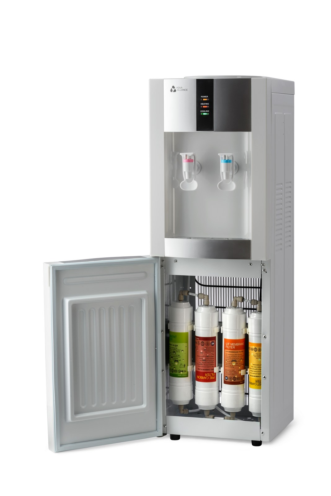 Представляем новинку в ассортименте AQUA ALLIANCE - напольный пурифайер компрессорного типа с 4х UF-системой очистки. Модель комплектована внешним нагревательным элементом и баком нагрева 1,2л, удобными краниками белого цвета нажим чашкой с внутренней резьбой. Цвет: белый корпус с серебрянными вставками, боковые панели белого цвета. Комплектация: кран врезки, трубка 1/4 - 3 метра, фильтры тип - I тип, фильтры размер - 12", инструкция.