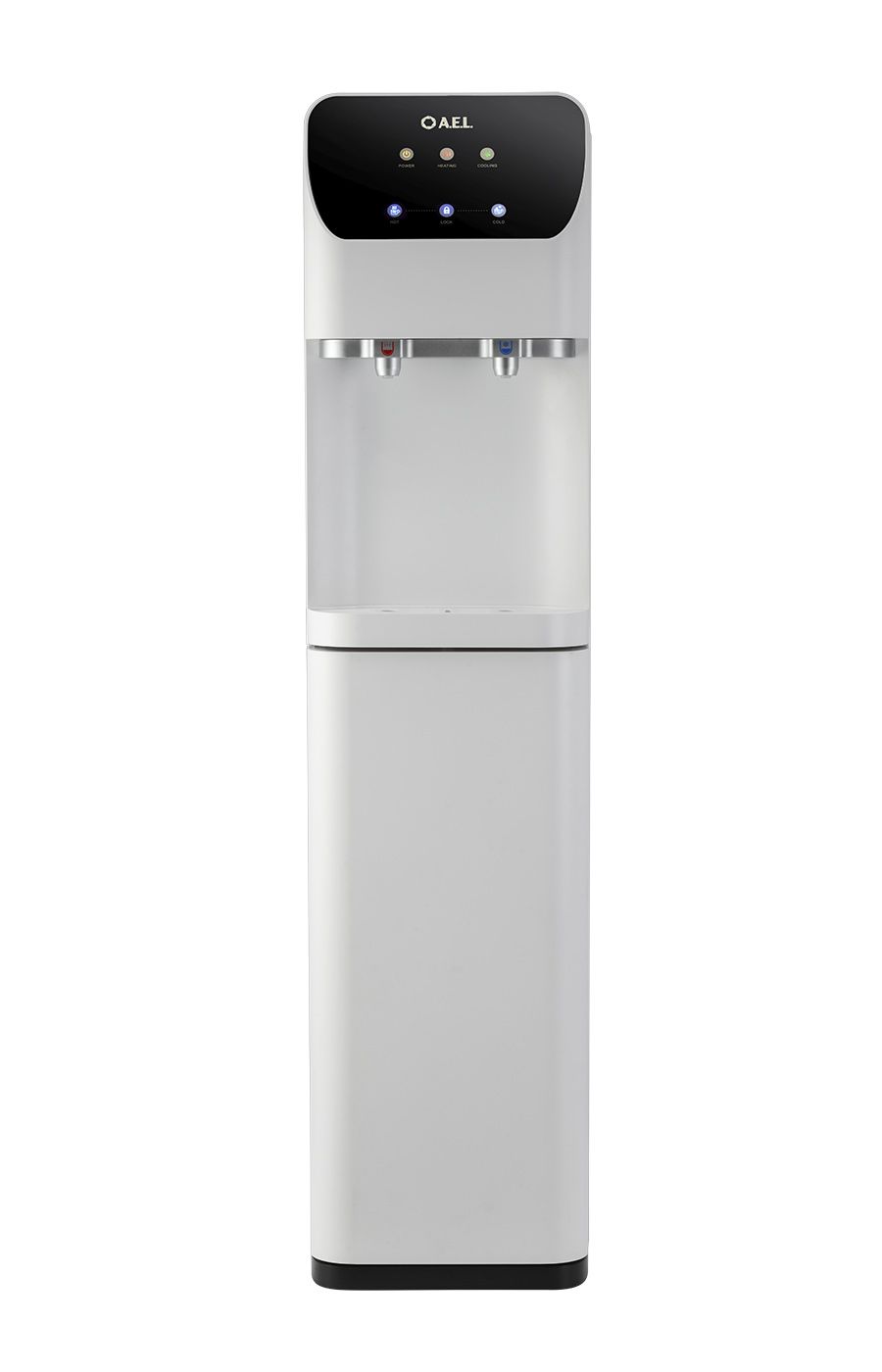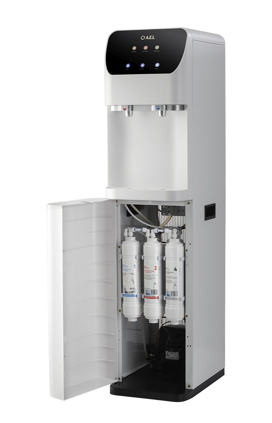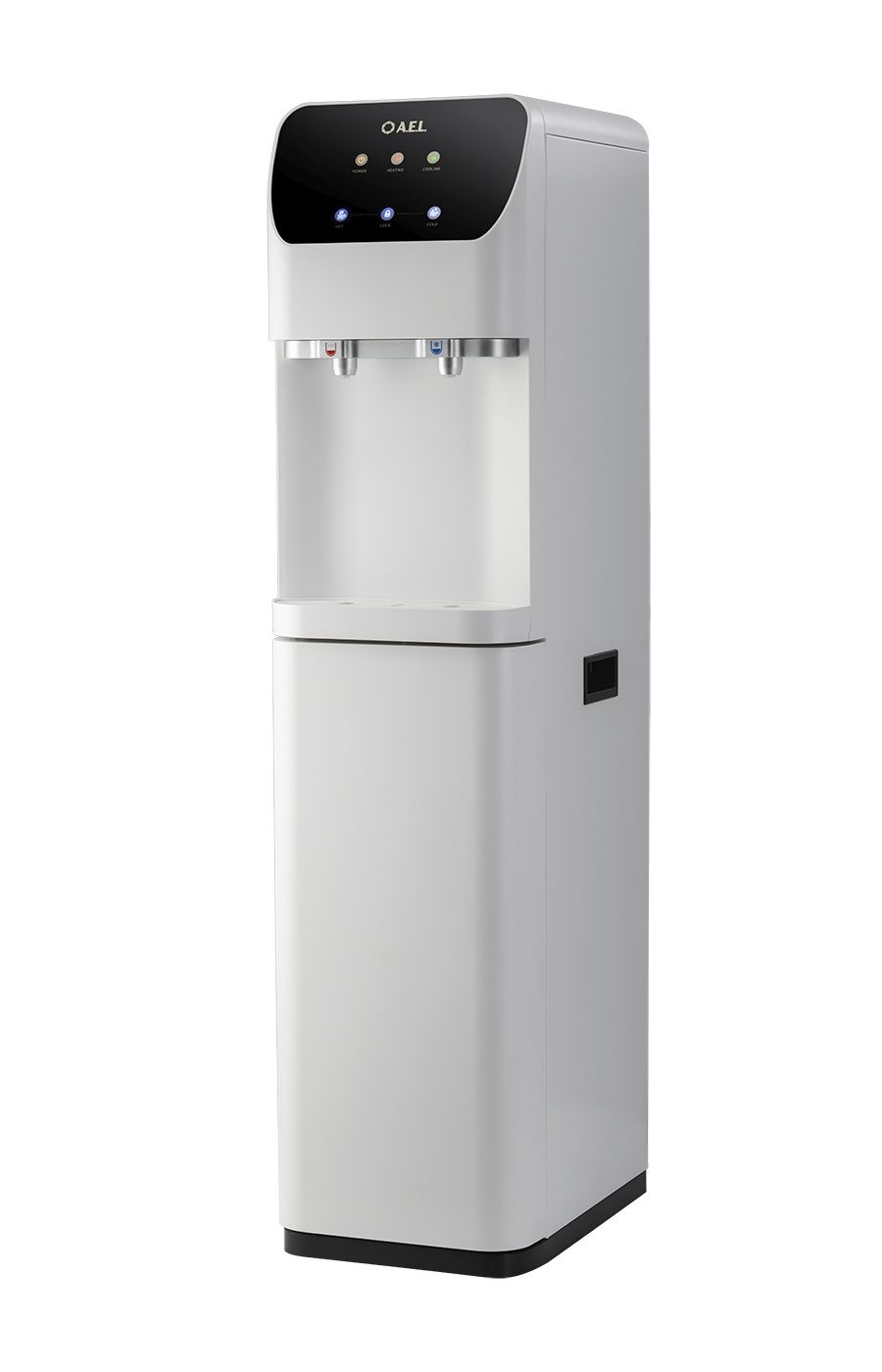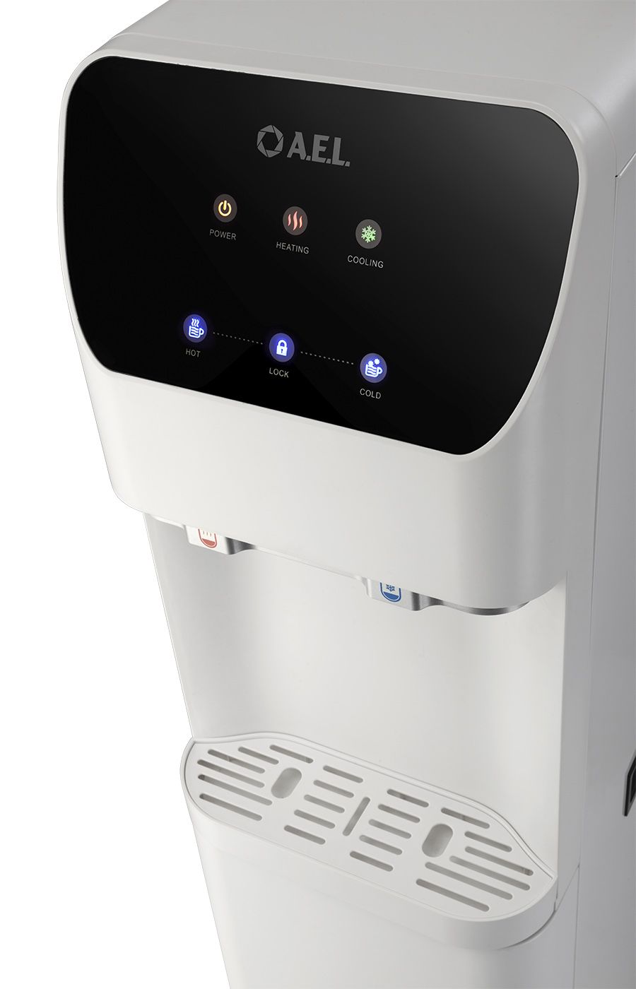 Пурифайер напольного типа с UF фильтрацией с компрессорным охлаждением. Вместительные баки холодной (8 л) и горячей воды (4,0 л). Большая производительность по нагреву: 8 л/ч (>85°С). Мощность нагревательного элемента 800 Вт. Сенсорная панель управления с блокировкой. Съемные носики кранов подачи воды. Индикация работы пурифайера, нагрева и охлаждения воды. Корпус белого цвета. Производство: Китай. Комплектация: фильтры 12U UF, трубка 1/4 - 3 м, кран-врезки.
