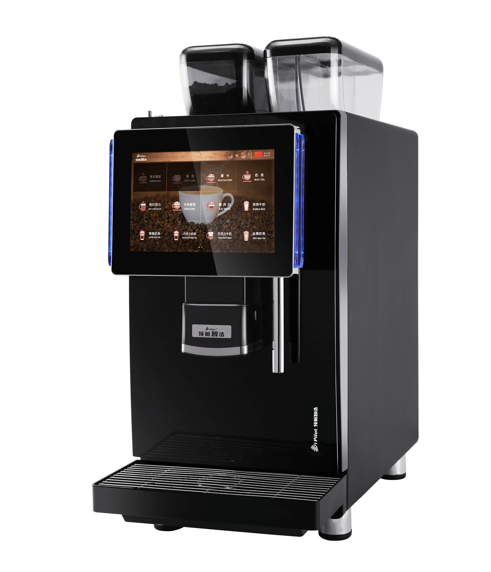24 напитка на выбор, 12 из которых с возможностью выбора объема чашки