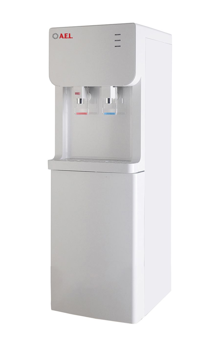 Кулер напольный с компрессорным охлаждением и шкафчиком. Кулер с высокой производительностью 700Вт по нагреву, благодаря чему за один час можно получить 7 литров горячей. Охлаждение 90Вт и 2 литра холодной воды. Для быстрого и удобного наливания воды в стакан или чашку предусмотрены два крана (холодный и горячий) с механизмом «нажим кружкой». Краны с внутренней резьбой для удобной замены в случае необходимости. Присутствует защита от случайного нажатия на кране горячей воды. Цвет аппарата: белый. Шкафчик для хранения 11л.