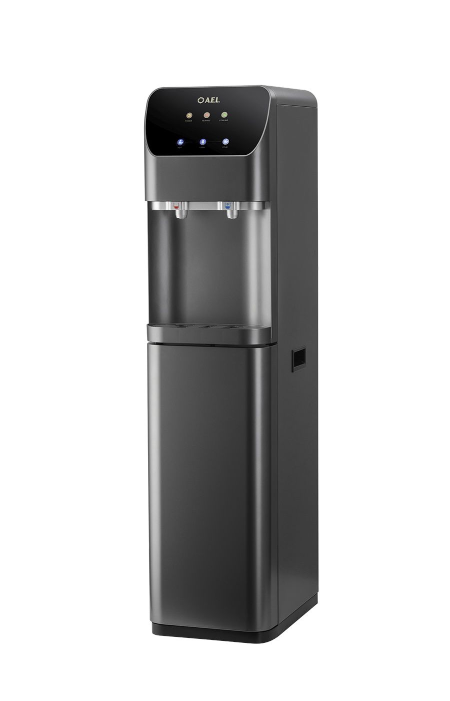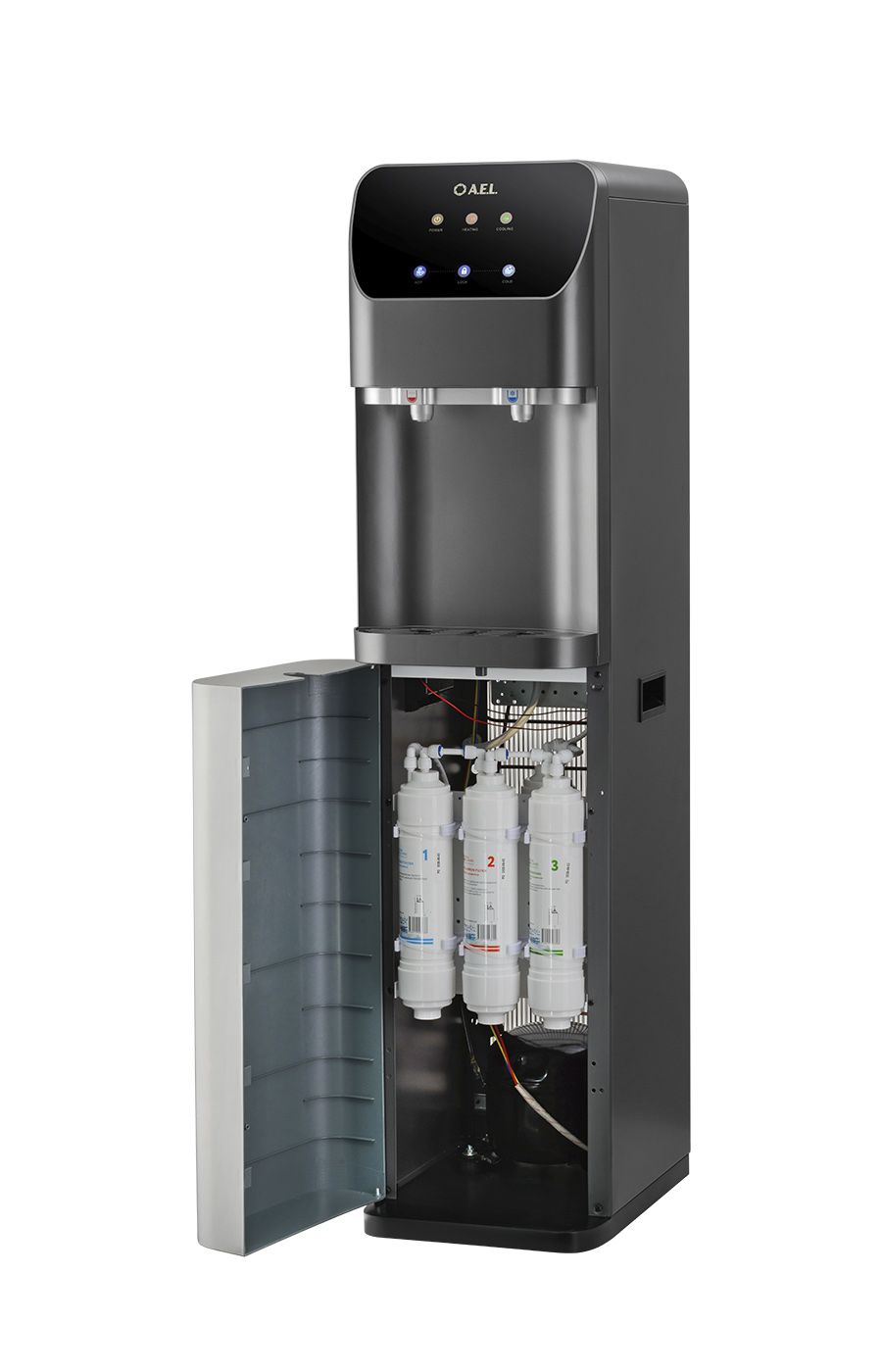Пурифайер напольного типа с UF фильтрацией с компрессорным охлаждением. Вместительные баки холодной (8 л) и горячей воды (4,0 л). Большая производительность по нагреву: 8 л/ч (>85°С). Мощность нагревательного элемента 800 Вт. Сенсорная панель управления с блокировкой. Съемные носики кранов подачи воды. Индикация работы пурифайера, нагрева и охлаждения воды. Цвет - темное серебро. Производство: Китай. Комплектация: фильтры 12U UF, трубка 1/4 - 3 м, кран-врезки.